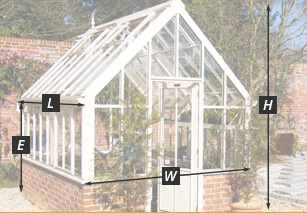 Depending on the style of your Greenhouse, use the corresponding table below to calculate its square surface area. You will need to know the length, width, height, and eaves height of the structure. Make a note of the result.